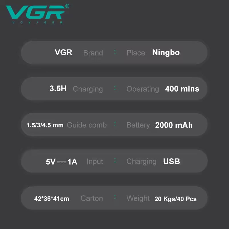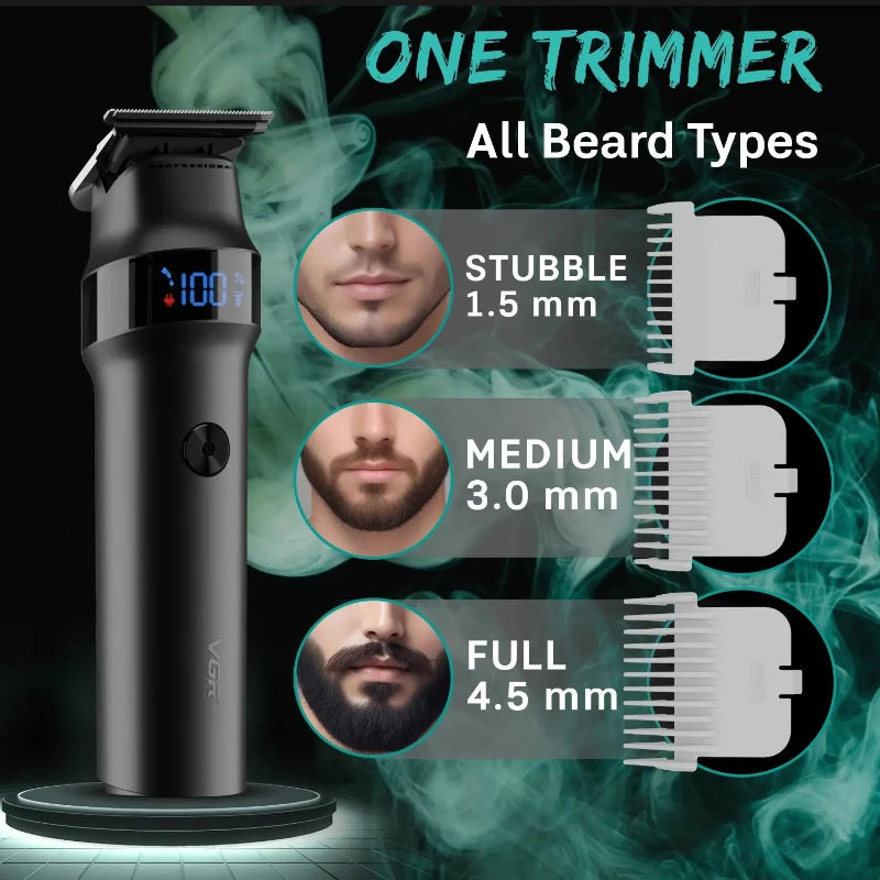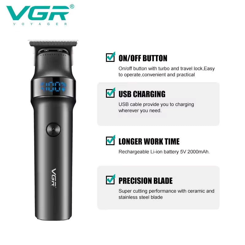 VGR Hair Trimmer Professional Men's Hair Trimmer Rechargeable Household LED Digital Display Cordless Electric Hair Trimmer V-987